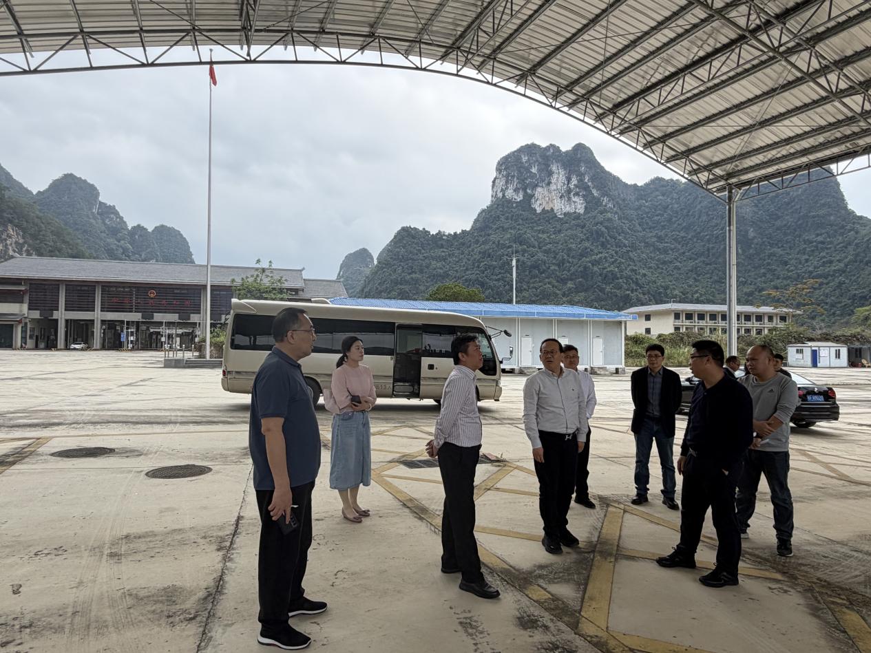 3月15日,调研组一行在大新县硕龙镇德天智慧边境巡控中心,详细了解边境管控智能化建设情况。随后,调研组参观了大新县新材料智造产业园,深入了解硕龙社区边关地下长城、国门党校、国门广场等地的建设与运行情况,以及硕龙口岸岩应通道“两国双园”构想、岩应边民互市区建设情况等。