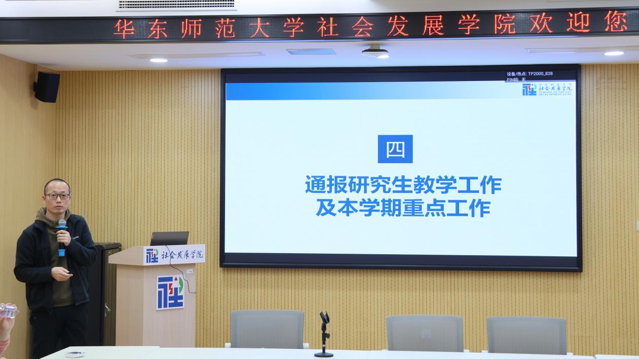 副院长姚泽麟通报了研究生和本科生教学与改革动向,包括研究生招生结构调整、博士生培养成本分担机制改革、专业学位实践成果评价探索等;本科教学方面,介绍学校正在推进的卓越育人3.0改革,并对教学管理规范作出提醒。