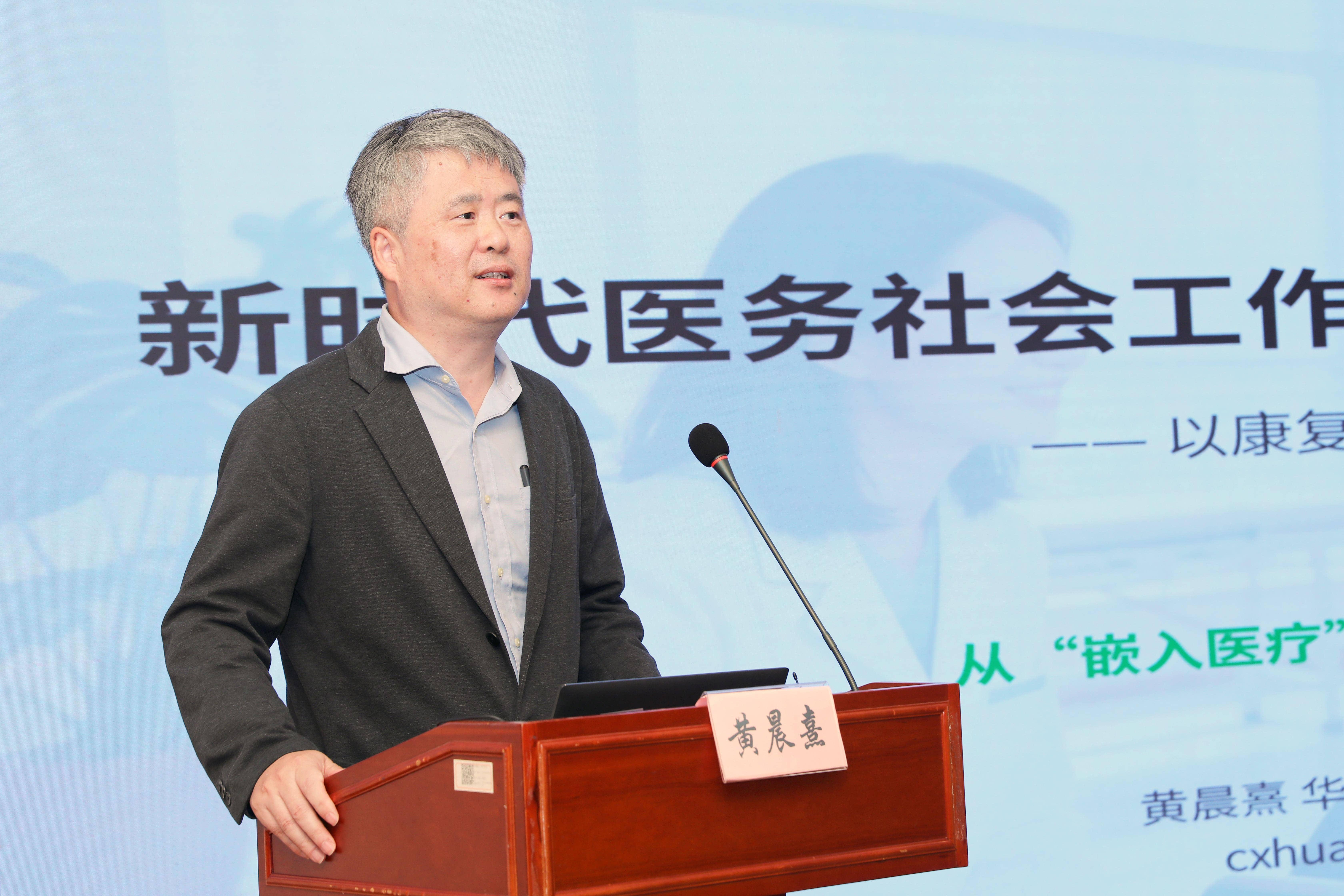 在研讨会主旨演讲环节,我院副院长黄晨熹教授与交通大学中国医院发展研究院健康社会工作研究所所长季庆英,复旦大学文科科研处处长顾东辉进行了发言。黄晨熹围绕新时代医务社会工作高质量发展的内涵和路径展开报告,他深刻解读了高质量发展的核心在于服务品质、专业效能与社会价值的全面跃升,并系统阐述了实现这一目标的四大路径:提升服务质量、深化制度嵌入、强化专业能力、彰显社会价值,为康复社工的规范化、专业化发展提供了清晰的理论框架与实践指引。