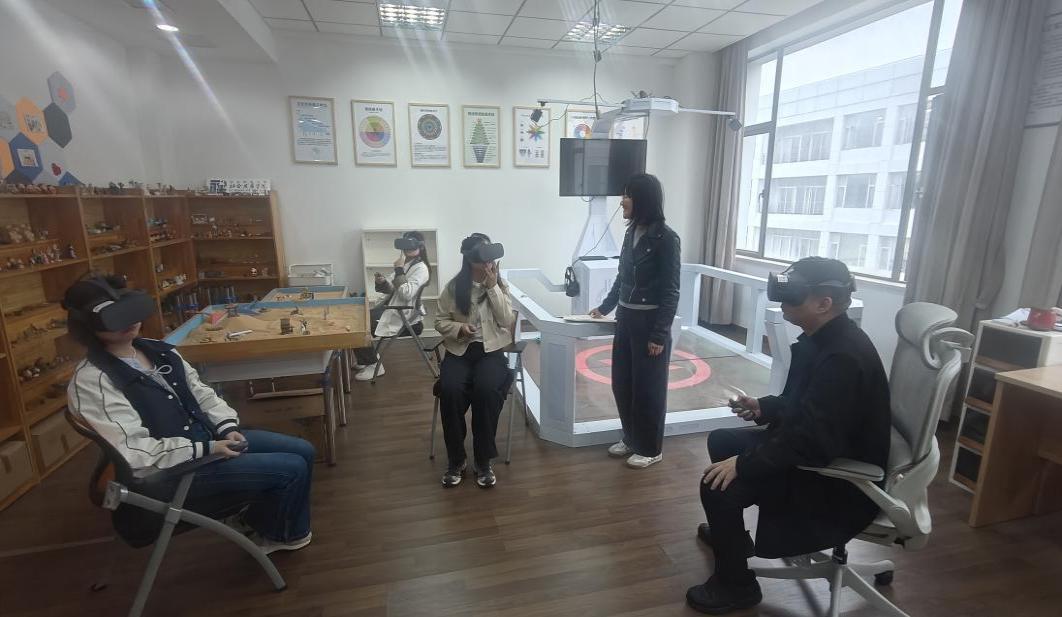 交流结束后,阳光中心一行实地参访了社会工作实验室,了解实验室建设、实验教学及实践项目开展情况,并现场体验了实验室的VR设备和青少年社会工作AI学习平台。